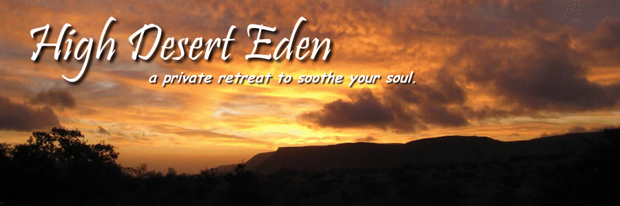 "We live proudly off the electrical grid at High Desert Eden, with a photo-voltaic array mounted on a state-of-the-art "tracker," augmented by a wind generator. While we have all the modern amenities here, we've learned to be conscious about consumption and live lightly on the land. We ask all our guests to do the same. Max is available for discussion and consultation about our system." |